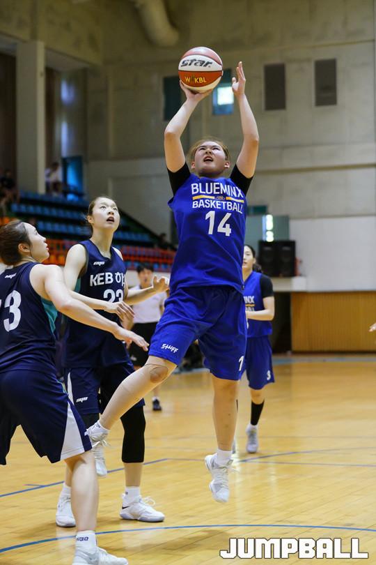 [점프볼=속초/홍기웅 기자] 26일 속초실내체육관에서 열린 2017 박신자컵 서머리그 삼성블루밍스와 KEB하나은행 경기. 삼성 김민정이 골 밑에서 연속된 득점으로 활약하고 있다.