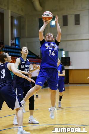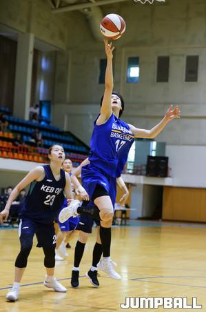 [점프볼=속초/홍기웅 기자] 26일 속초실내체육관에서 열린 2017 박신자컵 서머리그 삼성블루밍스와 KEB하나은행 경기. 삼성 최희진이 한 발을 축으로 페이더웨이 슛을 하고 있다.