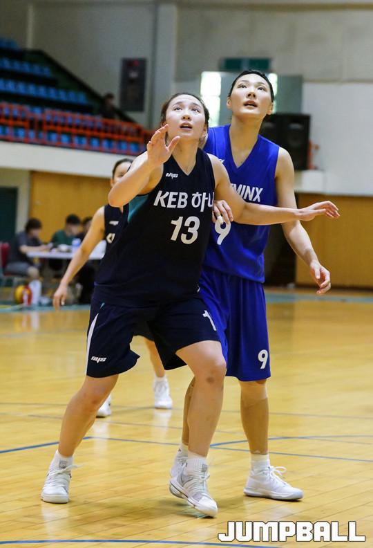 [점프볼=속초/홍기웅 기자] 26일 속초실내체육관에서 열린 2017 박신자컵 서머리그 삼성블루밍스와 KEB하나은행 경기. KEB 김단비가 박스아웃으로 골밑을 봉쇄하고 있다.