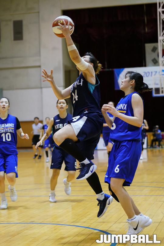 [점프볼=속초/홍기웅 기자] 26일 속초실내체육관에서 열린 2017 박신자컵 서머리그 삼성블루밍스와 KEB하나은행 경기. KEB 이수연이 삼성 수비수들을 제치고 레이업 슛을 던지고 있다.