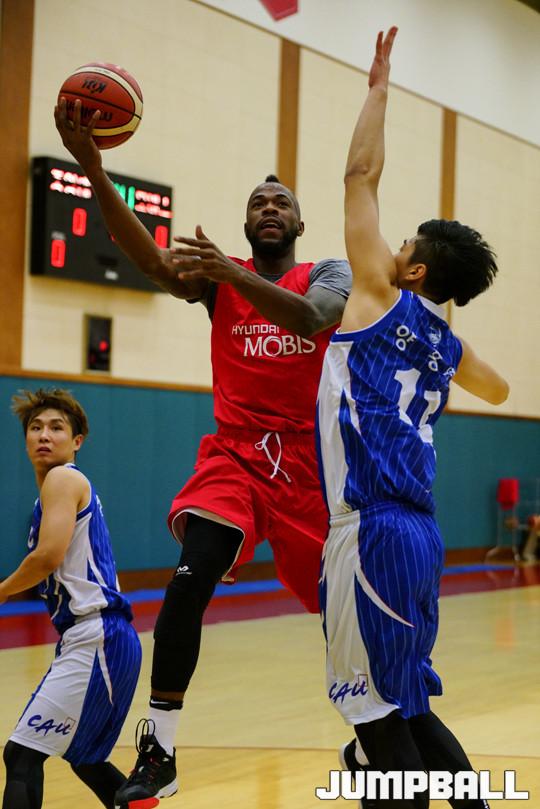 [점프볼=용인/홍기웅 기자] 28일 용인 모비스 피버스 연습 경기장에서 모비스 피버스와 중앙대와의 연습 경기. 모비스 마커스 블레이클리가 경기 시작을 알리는 레이업을 던지고 있다.