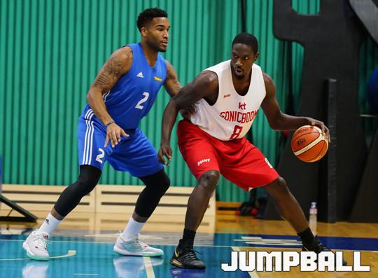 [점프볼=용인/홍기웅 기자] 31일 용인에 위치한 삼성STC(트레이닝 센터)에서 삼성과 KT가 연습경기를 가졌다. KT 테런스 왓슨과 삼성 마커스 커밍스가 매치업을 하고 있다.