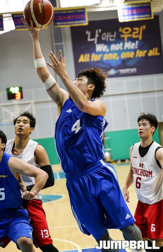 [점프볼=용인/홍기웅 기자] 31일 용인에 위치한 삼성STC(트레이닝 센터)에서 삼성과 KT가 연습경기를 가졌다. 삼성 천기범이 스크린 도움을 받아 레이업을 올려 넣고 있다.