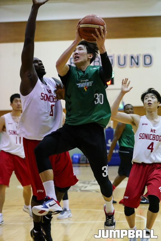 [점프볼=수원/홍기웅 기자] 1일 수원에 위치한 올레빅토리움에서 KT와 동부가 연습경기를 가졌다. 동부 두경민이 레이업을 시도하고 있다.