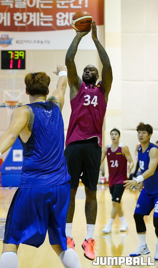 [점프볼=용인/홍기웅 기자] 2일 용인 마북리에 위치한 KCC연습경기장에서 KCC와 LG가 연습경기를 가졌다. LG 조쉬 파월이 상대 수비 앞에서 점프 슛을 던지고 있다.