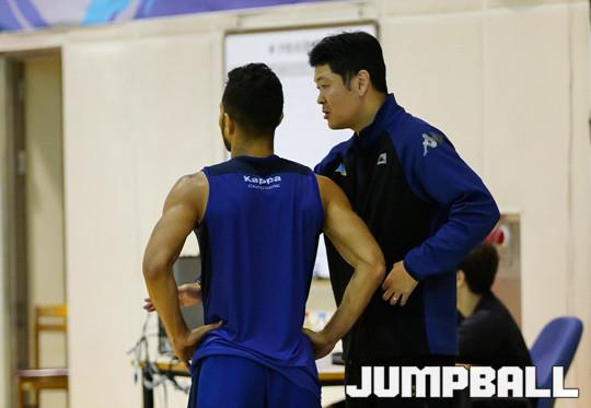 [점프볼=용인/홍기웅 기자] 2일 용인 마북리에 위치한 KCC연습경기장에서 KCC와 LG가 연습경기를 가졌다. KCC 추승균 감독이 전태풍에게 개인 지시를 내리고 있다.