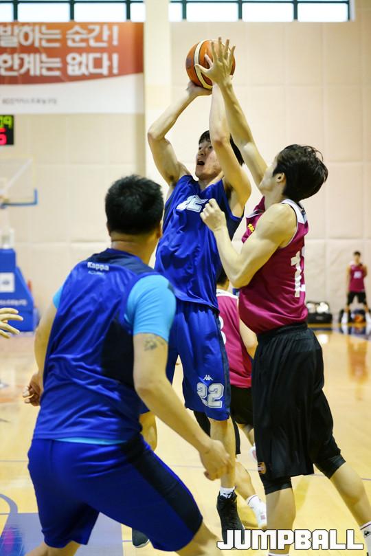 [점프볼=용인/홍기웅 기자] 2일 용인 마북리에 위치한 KCC연습경기장에서 KCC와 LG가 연습경기를 가졌다. KCC 최승욱이 상대 수비에도 불구하고 과감하게 점프 슛을 던지고 있다.