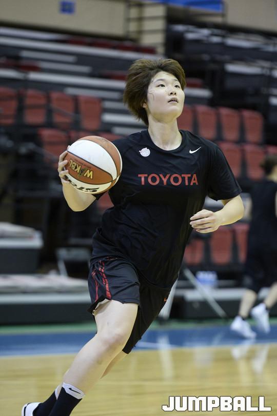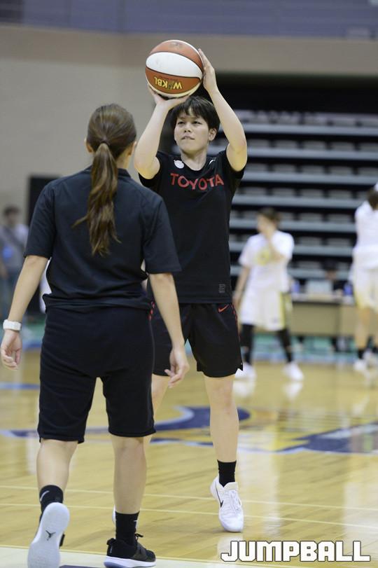 [점프볼/아산=홍기웅 기자] 17일 아산이순신체육관에서 열린 '한일 여자농구 클럽 챔피언십' 둘째 날 JX와 도요타의 경기. 도요타 선수들이 경기전 연습을 갖고 있다.