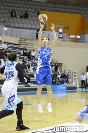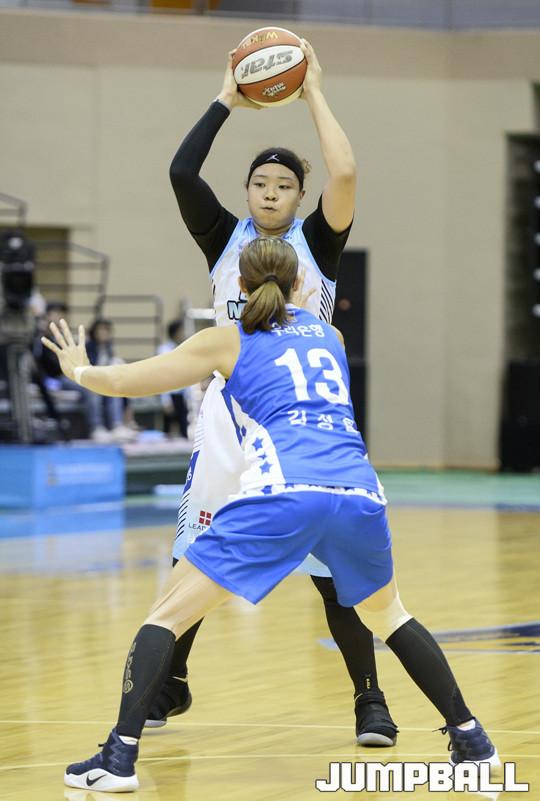 [점프볼/아산=홍기웅 기자] 17일 아산이순신체육관에서 열린 '한일 여자농구 클럽 챔피언십' 둘째 날 삼성생명과 우리은행의 경기. 삼성 김한별이 우리은행의 힘든 수비에 돌파할 곳을 찾고 있다.