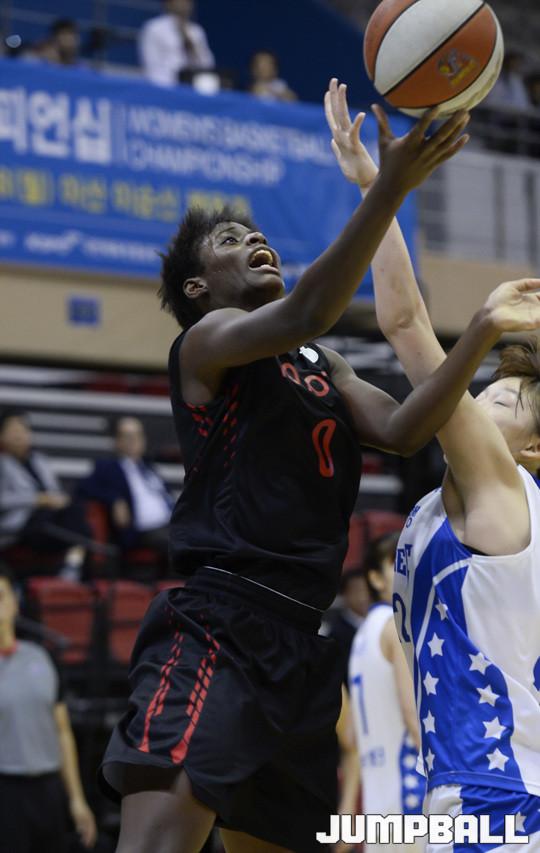 [점프볼/아산=홍기웅 기자] 18일 아산이순신체육관에서 열린 '한일 여자농구 클럽 챔피언십' 마지막 날 우리은행과 도요타의 경기. 도요타 마우리 에블린이 골밑 슛을 시도하고 있다.
