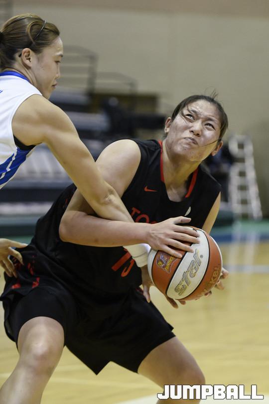 [점프볼/아산=홍기웅 기자] 18일 아산이순신체육관에서 열린 '한일 여자농구 클럽 챔피언십' 마지막 날 우리은행과 도요타의 경기. 도요타 마 이이나가 공을 꽉 붙잡으며 골대를 바라보고 있다.
