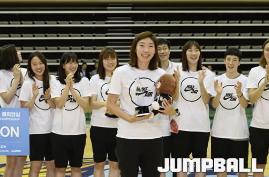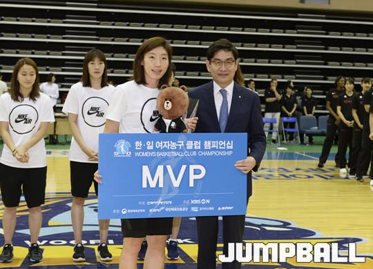 [점프볼/아산=홍기웅 기자] 18일 아산이순신체육관에서 열린 '한일 여자농구 클럽 챔피언십' 시상식에서 우리은행이 2승 1패로 JX ENEOS와 동률을 이뤘으나 승자승 원칙으로 우승했다. 최우수 선수의 영광은 매 경기마다 고른 활약을 펼친 우리은행의 주장 임영희 선수가 차지했다.'한일 여자농구 클럽 챔피언십' MVP 시상식 화보.