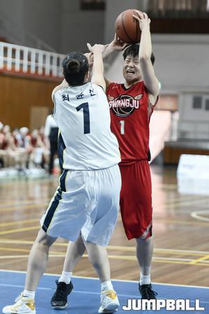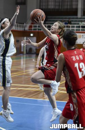 [점프볼/광주=홍기웅 기자] 20일 광주대학교 실내체육관에서 열린 '2017 남녀 대학 농구리그' 광주대와 수원대의 여자부 챔피언결정전 1차전 경기. 광주대 장지은이 외곽 슛을 던지고 있다.