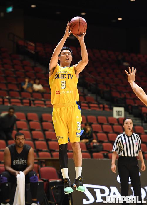 20일 마카오 스튜디오 시티 이벤트홀에서 열린 동아시아 최고의 클럽팀을 가리는 'THE SUPER 8' 농구대회에 서울 삼성 썬더스와 푸본 브레이브스의 경기, 삼성 이관희가 1쿼터 종료직전 3점슛을 던지고 있다.