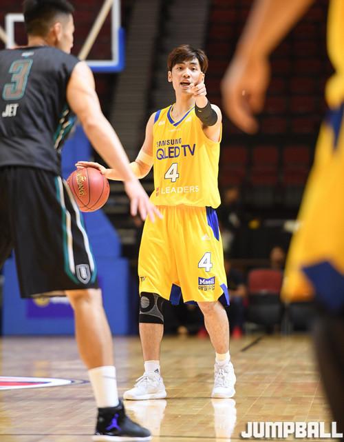 20일 마카오 스튜디오 시티 이벤트홀에서 열린 동아시아 최고의 클럽팀을 가리는 'THE SUPER 8' 농구대회에 서울 삼성 썬더스와 푸본 브레이브스의 경기, 삼성 천기범이 골밑을 가리키며 작전을 지시하고 있다.