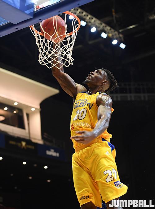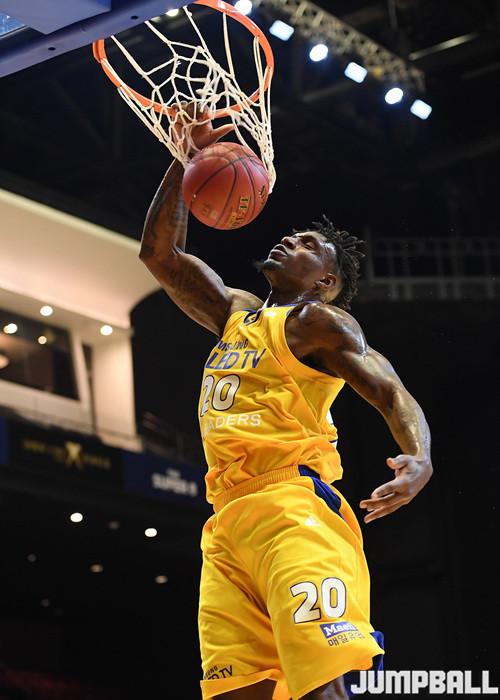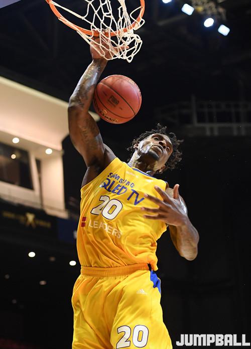 20일 마카오 스튜디오 시티 이벤트홀에서 열린 동아시아 최고의 클럽팀을 가리는 'THE SUPER 8' 농구대회에 서울 삼성 썬더스와 푸본 브레이브스의 경기, 삼성 라틀리프가 파워 풀한 공격력을 펼치며 원핸드 덩크를 작렬하고 있다.