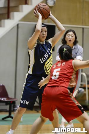 [점프볼/수원=홍기웅 기자] 21일 수원대학교 실내체육관에서 열린 '2017 남녀 대학 농구리그' 수원대와 광주대의 여자부 챔피언결정전 2차 경기. 수원대 장유영이 레이업중 파울당해 공을 놓치고 있다.
