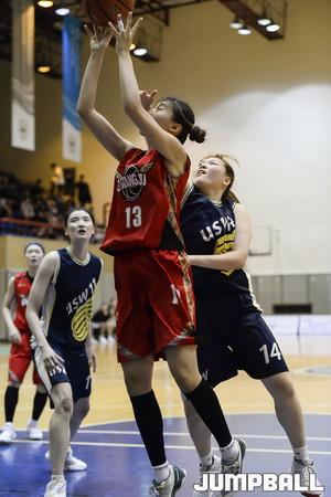 [점프볼/수원=홍기웅 기자] 21일 수원대학교 실내체육관에서 열린 '2017 남녀 대학 농구리그' 수원대와 광주대의 여자부 챔피언결정전 2차 경기. 광주대 강유림이 수비수를 앞에 두고 골밑 슛을 던지고 있다.