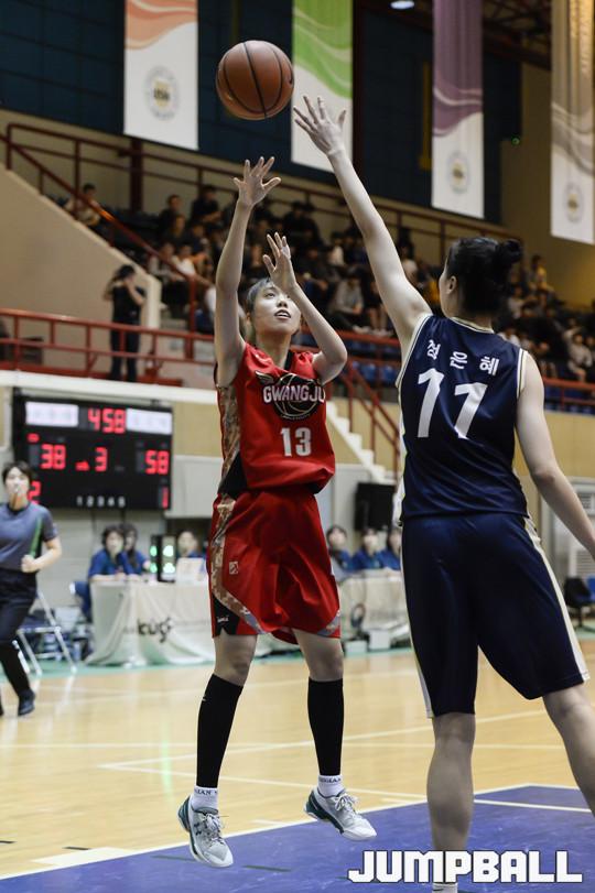 골밑 슛을 던지는 광주대 강유림