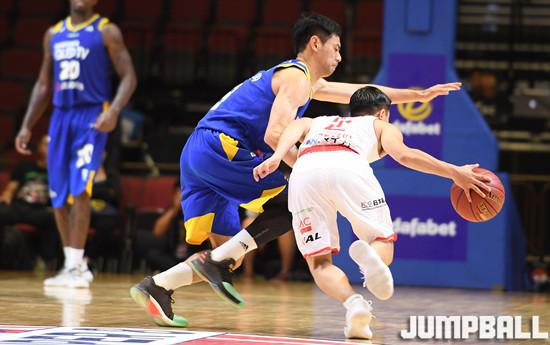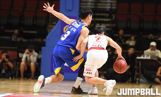 22일 마카오 스튜디오 시티 이벤트홀에서 열린 동아시아 최고의 클럽팀을 가리는 'THE SUPER 8' 농구대회에서 치바 쳇츠와 서울 삼성 썬더스의 경기, 삼성 이관희가 치바 도가시 유키를 전담으로 강하 수비를 펼치고 있다.