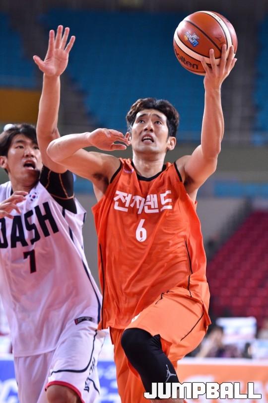 전자랜드 차바위가 대쉬의 수비를 뚫고 드라이브인을 시도하고 있다.
