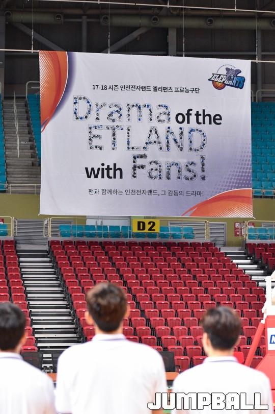 전자랜드 팬들의 염원을 담은 현수막이 공개되었다.