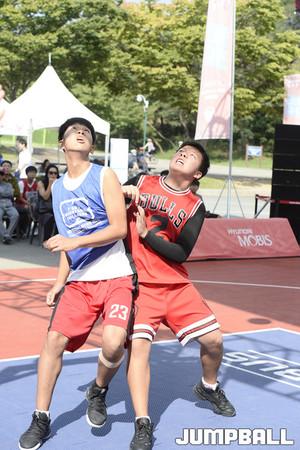 [ 점프볼=울산/홍기웅 기자] 24일 울산대공원 청소년광장에서 열린 2017 울산 현대모비스 3on3 바스켓볼 챌린지 8강 중등부 2경기 JSB와 더프로세서 경기. 더프로세서 선수가 돌파를 시도하고 있다.