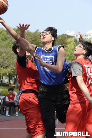 [점프볼=울산/홍기웅 기자] 24일 울산대공원 청소년광장에서 열린 2017 울산 현대모비스 3on3 바스켓볼 챌린지 8강 고등부 3경기 로테이션과 TREAM의 경기. TREAM 선수가 2점 슛을 던지고 있다.