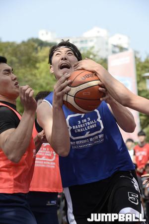 [점프볼=울산/홍기웅 기자] 24일 울산대공원 청소년광장에서 열린 2017 울산 현대모비스 3on3 바스켓볼 챌린지 8강 일반부 4경기 B2L과 김익환또불참의 경기. B2L이 골밑 슛을 던졌으나 블락을 당하고 있다.