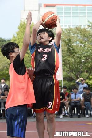 [점프볼=울산/홍기웅 기자] 24일 울산대공원 청소년광장에서 열린 2017 울산 현대모비스 3on3 바스켓볼 챌린지 중등부 4강 SIBOM과 더프로세서 경기. 더프로세서 선수가 수비를 신경쓰지 않고 골밑 슛을 시도하고있다.