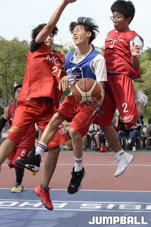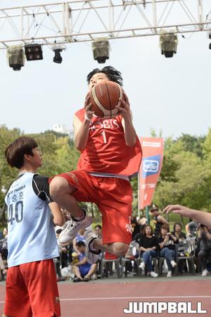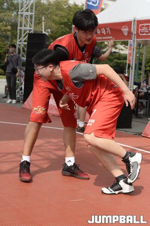 [점프볼=울산/홍기웅 기자] 24일 울산대공원 청소년광장에서 열린 2017 울산 현대모비스 3on3 바스켓볼 챌린지 고등부 4강 로테이션과 모비스 야음의 경기. 로테이션 선수가 골밑으로 슛을 올리는 도중 파울당하고 있다.