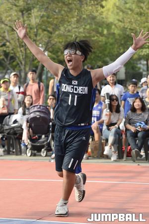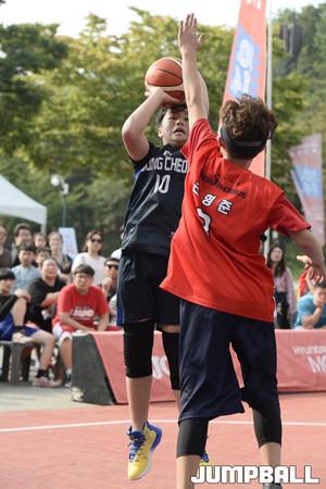 [점프볼=울산/홍기웅 기자] 24일 울산대공원 청소년광장에서 열린 2017 울산 현대모비스 3on3 바스켓볼 챌린지 중등부 결승전 SIBOM과 비쥬얼 경기. 비주얼 선수가 리버스 레이업을 시도하고 있다.