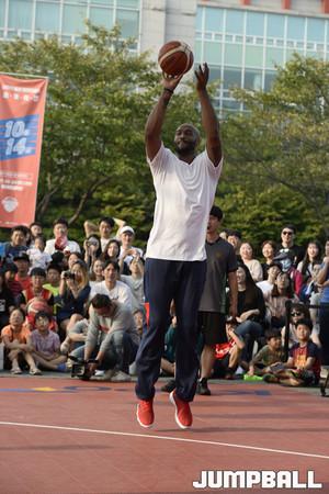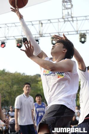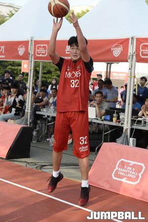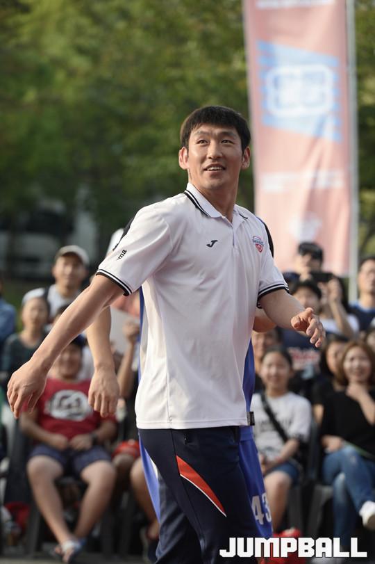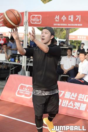 [점프볼=울산/홍기웅 기자] 24일 울산대공원 청소년광장에서 열린 2017 울산 현대모비스 3on3 바스켓볼 챌린지 빅매치 하하팀 VS 양동근팀 경기. 모비스 양동근이 교체로 코트에 들어가고 있다.