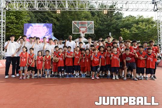[점프볼=울산/홍기웅 기자] 24일 울산대공원 청소년광장에서 열린 2017 울산 현대모비스 3on3 바스켓볼 챌린지 빅매치 하하팀 VS 양동근팀 경기가 끝나고 모비스 유소년과 모비스 선수들이 단체사진을 찍고있다.