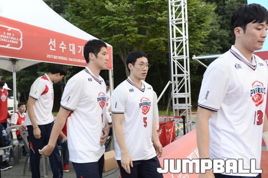 [점프볼=울산/홍기웅 기자] 24일 울산대공원 청소년광장에서 열린 2017 울산 현대모비스 3on3 바스켓볼 챌린지. 출정식이 시작되자 선수들이 입장하고 있다.