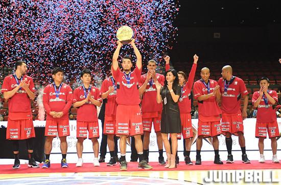 [점프볼=마카오/문복주 기자] 24일 마카오 스튜디오 시티 이벤트홀에서 열린 동아시아 최고의 클럽팀을 가리는 'THE SUPER 8' 농구대회 결승전으로 중국 저장 장샤 라이온스와 치바 젯츠의 경기에서 일본 치바 젯츠가 중국 저장 장샤 라이온스를 83-73으로 여유있게 물리치고 우승 트로피를 들어 올렸다.