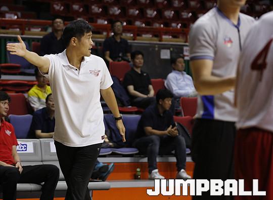 [점프볼=부산/점프볼사진부] 25일 사직실내체육관에서 진행된 부산KT와 러시아 블라디보스토크의 친선경기. KT 조동현 감독이 심판에게 파울에 대해 어필하고 있다.