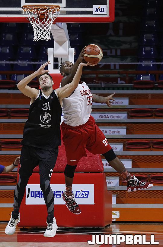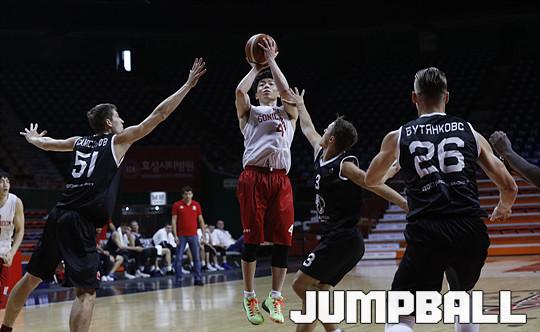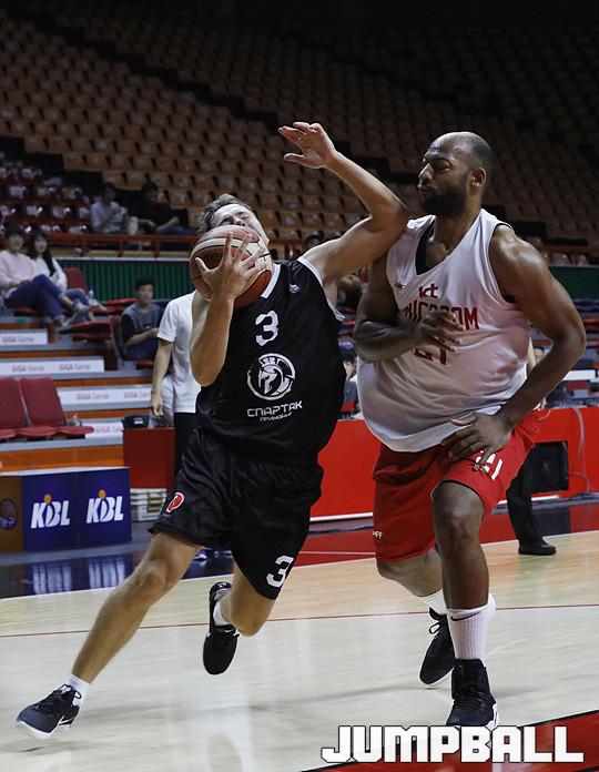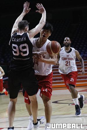 [점프볼=부산/점프볼사진부] 25일 사직실내체육관에서 진행된 부산KT와 러시아 블라디보스토크의 친선경기가 열렸다. 리온 윌리엄스, 웬델 맥키네스와 이재도가 각각 22점, 18점, 18점으로 맹활약을 펼친 끝에 83:79로 블라디보스토크를 제압했다. KT-블라디보스토크 친선경기 화보