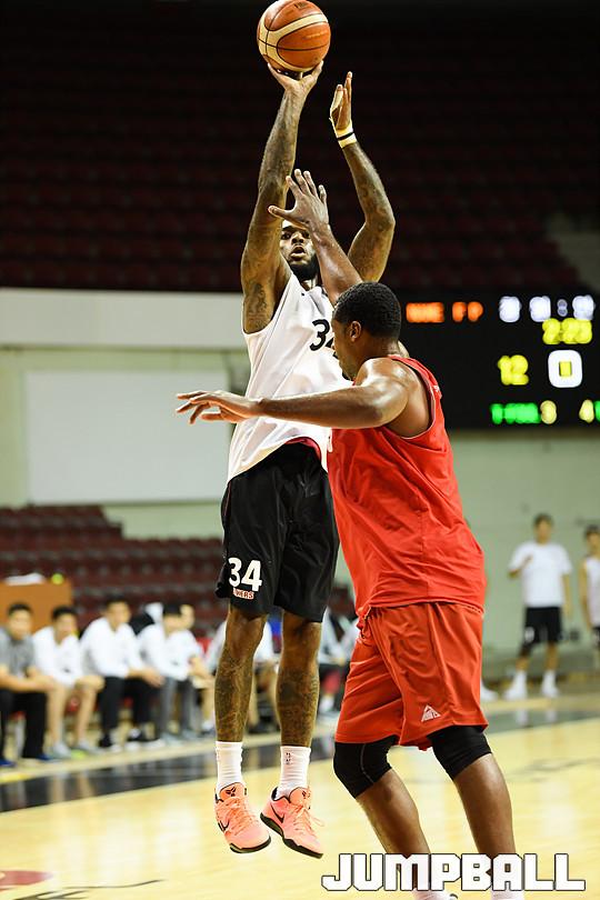 [점프볼=안양/유용우 기자] 03일 안양 실내체육관에서 안양 KGC 인삼공사와 창원 LG의 연습경기가 열렸다. 추석 연휴 기간 중에도 10월 14일 KBL 개막을 앞두고, 양팀 선수단은 구슬땀을 흘리며 마지막 기량 점검을 하고 있다. LG 조쉬 파월이 중거리슛을 시도하고 있다.