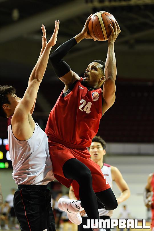 [점프볼=안양/유용우 기자] 03일 안양 실내체육관에서 안양 KGC 인삼공사와 창원 LG의 연습경기가 열렸다. 추석 연휴 기간 중에도 10월 14일 KBL 개막을 앞두고, 양팀 선수단은 구슬땀을 흘리며 마지막 기량 점검을 하고 있다. KGC 이페브라가 골밑 공격을 시도하고 있다.
