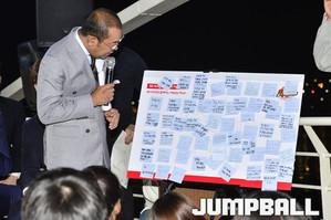 [점프볼=서울/홍기웅 기자] 7일 잠실한강크루즈에서 서울 SK나이츠가 출정식을 가졌다. 출정식에는 선상에서 선수들과 함께하는 식사시간 및 질문시간 등을 가졌으며 출정식 하이라이트로 선수들의 합창을 감상하고 다같이 불꽃놀이를 관람하는 것으로 출정식을 마무리 지었다. 팬들이 문경은 감독에게 경기중 자주 구렛나룻을 만지는 버릇에 대해 질문하자 문경은 감독이 대답하고 있다.