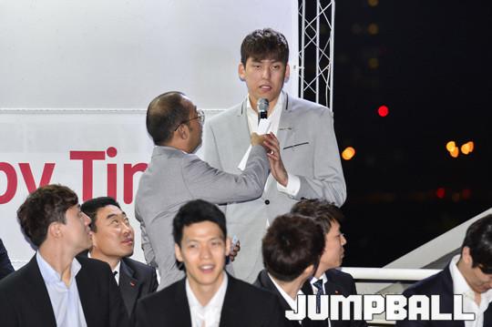 [점프볼=서울/홍기웅 기자] 7일 잠실한강크루즈에서 서울 SK나이츠가 출정식을 가졌다. 출정식에는 선상에서 선수들과 함께하는 식사시간 및 질문시간 등을 가졌으며 출정식 하이라이트로 선수들의 합창을 감상하고 다같이 불꽃놀이를 관람하는 것으로 출정식을 마무리 지었다. 팬이 최준용에게 시즌 경기중에 물개박수를 볼 수 있냐고 질문하자 승리할 때마다 선보이겠다고 답변하고 있다.