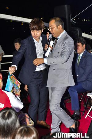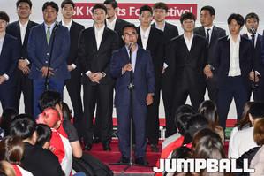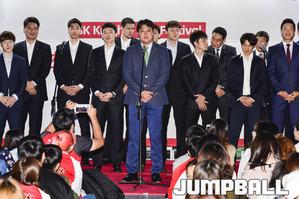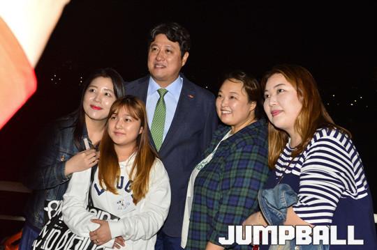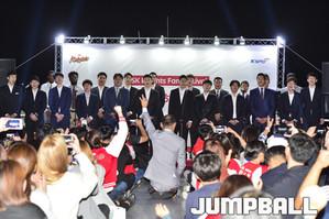 [점프볼=서울/홍기웅 기자] 7일 잠실한강크루즈에서 서울 SK나이츠가 출정식을 가졌다. 출정식에는 선상에서 선수들과 함께하는 식사시간 및 질문시간 등을 가졌으며 출정식 하이라이트로 선수들의 합창을 감상하고 다같이 불꽃놀이를 관람하는 것으로 출정식을 마무리 지었다. 팬들이 자유롭게 선수와 감독들과의 포토타임을 갖고 있다.