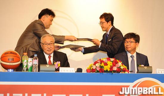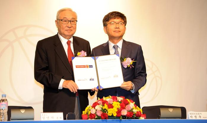 KBL은 11일 양재동 더케이호텔 크리스탈볼룸에서 KGC인삼공사와 타이틀스폰서 조인식을 가졌다.