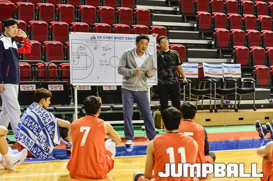 [점프볼=인천/홍기웅 기자] 13일 인천삼산체육관에서 전자랜드의 KBL 개막전 막바지 훈련이 진행됐다. 우승 후보 팀으로 거론된 만큼 선수들이 구슬땀을 흘리며 진지한 자세로 훈련에 임하고 있다. 전자랜드 유도훈 감독이 코트 활용에 대해 선수들에게 설명하고 있다.