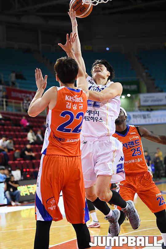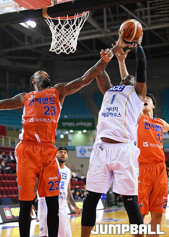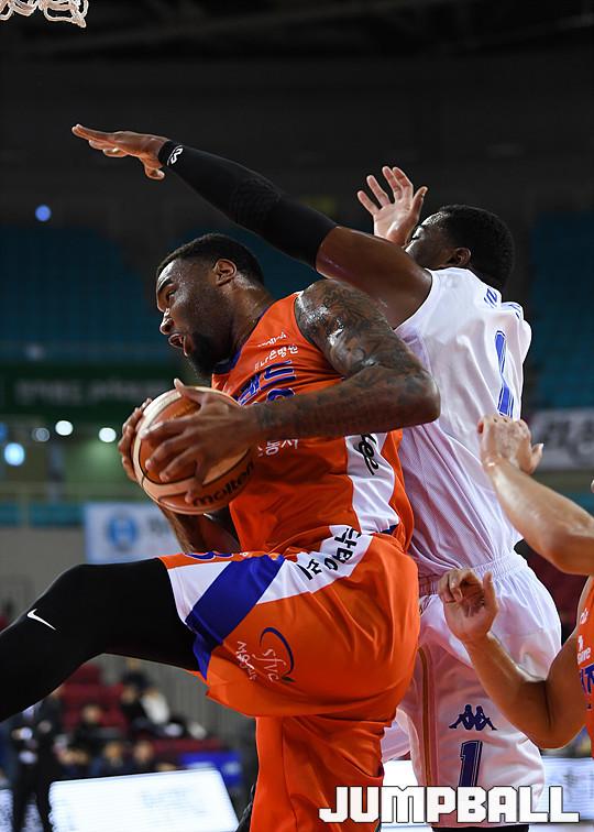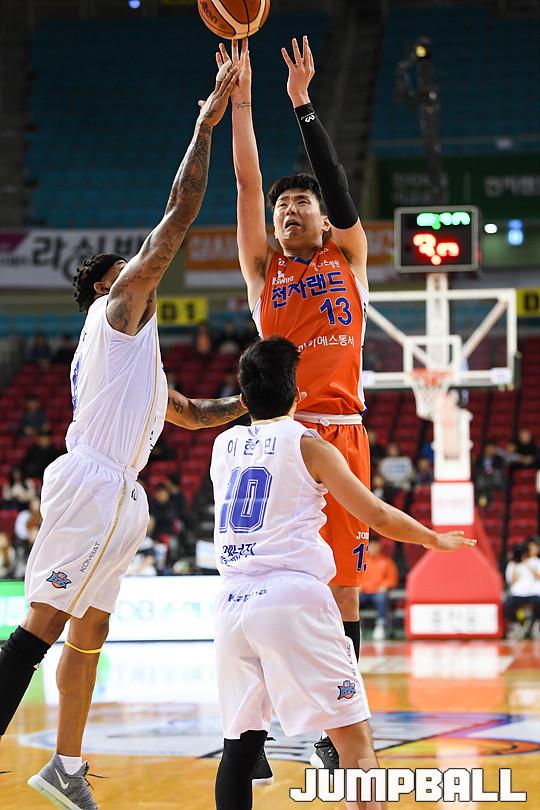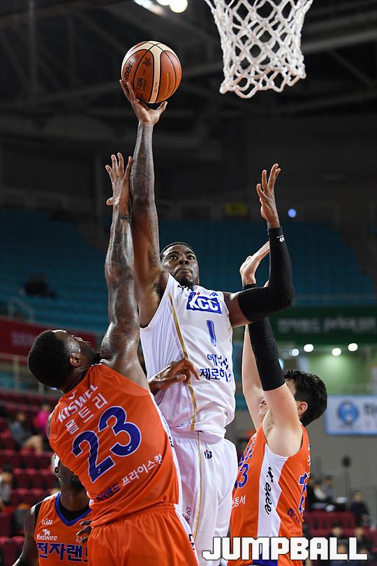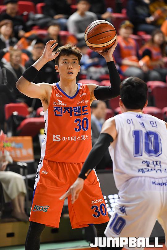 [점프볼=인천/유용우 기자] 18일 인천 삼산체육관에서 열린 '2017-2018 정관장 프로농구' 인천 전자랜드와 전주 KCC의 경기, 전자랜드가 98-92로 홈승리를 거뒀다. 인천 전자랜드와 전주 KCC의 경기 화보