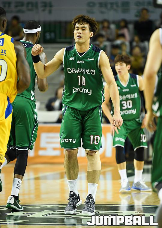 [점프볼=원주/유용우 기자] 20일 원주 실내체육관에서 열린 '2017-2018 정관장 프로농구' 원주 DB와 서울 삼성의 경기, DB 김태홍이 슛을 성공시키고 주먹을 움켜지고 있다.