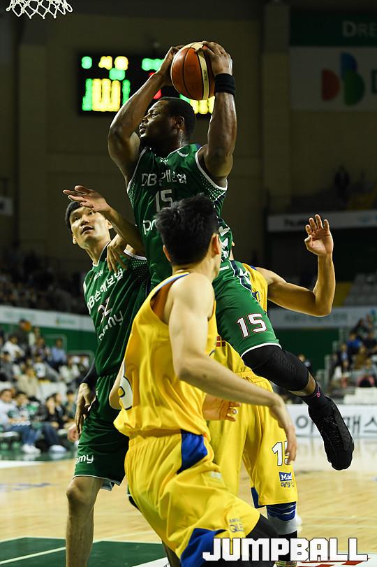 [점프볼=원주/유용우 기자] 20일 원주 실내체육관에서 열린 '2017-2018 정관장 프로농구' 원주 DB와 서울 삼성의 경기, DB 버튼이 리바운드를 잡고 있다.