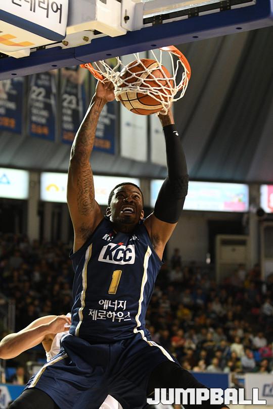 21일 전주실내체육관에서 열린 '17-18 정관장 프로농구 전주 KCC 와 울산 현대모비스 의 경기에서 찰스 로드가 덩크슛을 터뜨리고 있다.