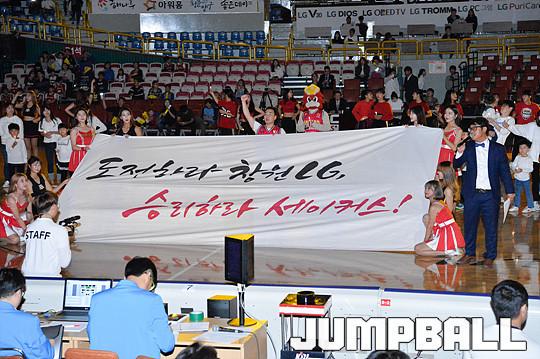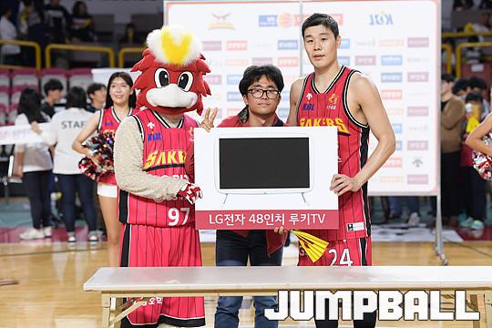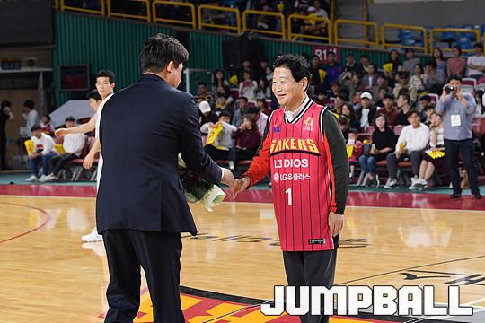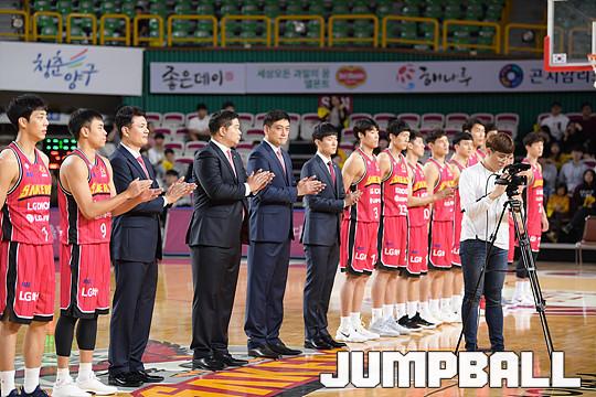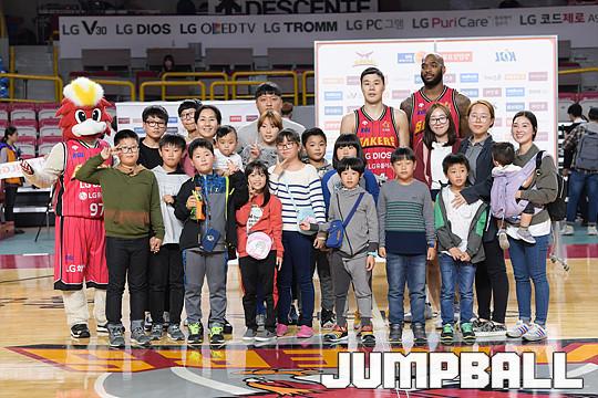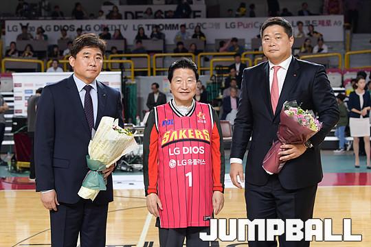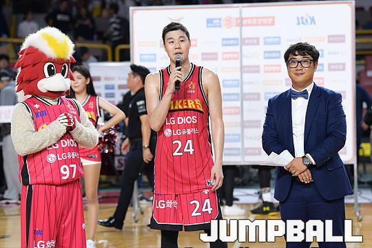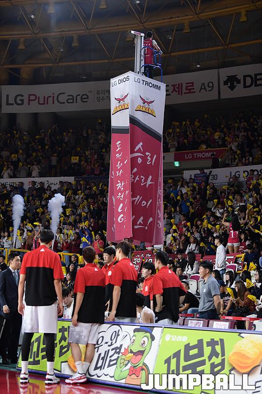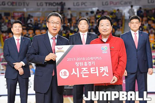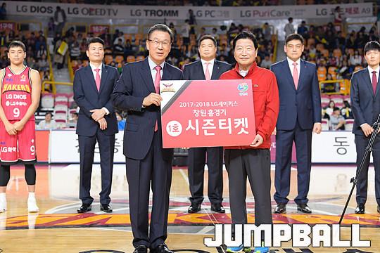[점프볼=창원/유용우 기자] 21일 창원 실내체육관에서 열린 '2017-2018 정관장 프로농구' 창원 LG와 안양 KGC 인삼공사의 경기, LG가 89-87로 KGC에 이기며 홈개막전을 승리로 장식했다. 경기에 앞서 창원 댄스 공연팀의 공연을 시작으로 신문범 대표이사의 개회사, 안상수 창원 시장의 축사로 이어지며, 창원에서의 17-18 시즌 홈개막을 알렸다. LG 홈 개막전 이벤트 화보